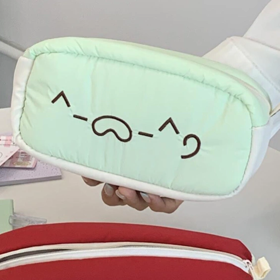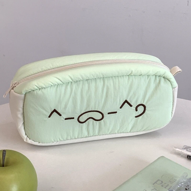 Green Apple Embroidered Kitten Pencil Case Cute Stationery Bag Student Large Capacity Pencil Case Girls Cosmetic Bag